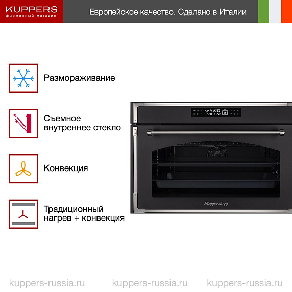 Духовой шкаф Купперсберг FR 911 ANT SILVER оснащен грилем, который позволяет готовить сочные и аппетитные блюда с золотистой корочкой. Используйте верхний и нижний нагрев для того, чтобы равномерно запекать мясо и пироги. Вентилятор постоянно перемещает воздух по внутренней камере. Блюда прогреваются со всех сторон. Режим разморозки нужен для того, чтобы быстро подготовить продукты к приготовлению. При этом, они сохранят свою форму и полезные свойства. Конвекцию можно сочетать с другими режимами. Прибор может поддерживать заданную температуру. Эта опция пригодится если гости задерживаются, а блюда должны остаться горячими.