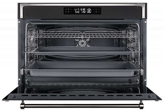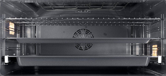 Встроенные лампы ярко освещают внутреннюю камеру. Вы всегда сможете проконтролировать процесс готовки. Используйте мультифункциональный таймер. Настройте нужно время, прибор напомнит вам о том, что его пора выключить. Дверца с двойным остеклением не нагревается во время готовки. Об нее практически невозможно обжечься. Она также оснащена доводчиком. Благодаря компактным размерам прибор поместится даже на небольшой кухне. При этом, он полностью функционален, им комфортно пользоваться. На одном уровне установлены телескопические направляющие. Устройство энергоэффективно и относится к высокому классу энергопотребления (А).