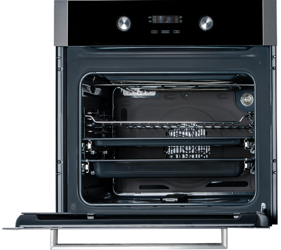 В турборежиме тепло исходит только от кольцевого нагревательного элемента на задней стенке, но равномерно распределяется по всему объему духового шкафа. Таким образом становится возможно задействовать все уровни и готовить несколько блюд одновременно. Если же установить переключатель температуры на ноль, то турборежим отлично подойдет для бережного оттаивания замороженных продуктов.