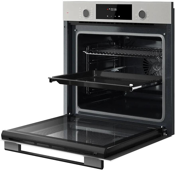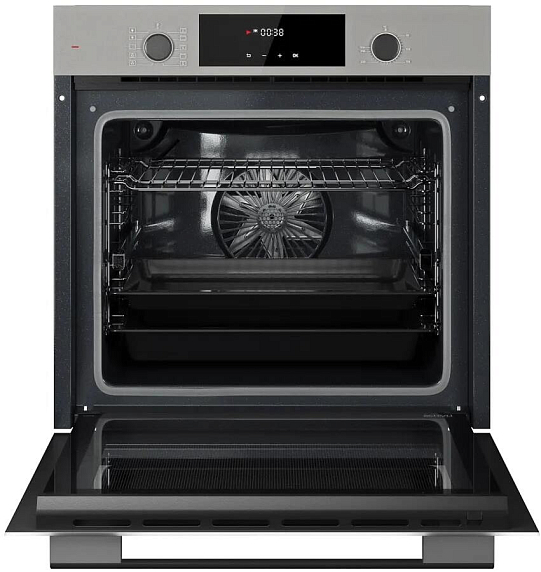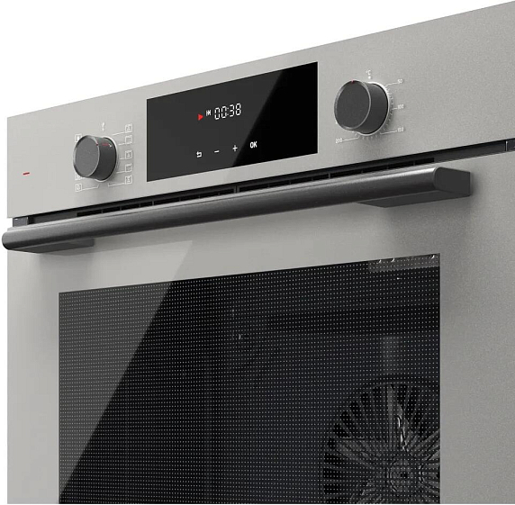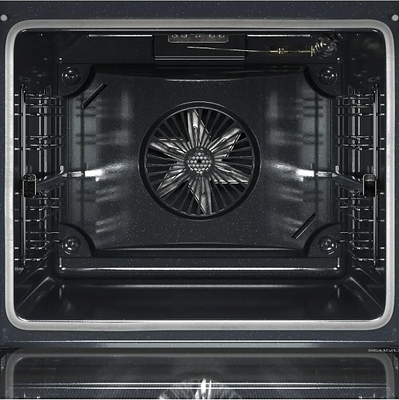 Управление духовкой осуществляется при помощи электронного сенсорного программатора с цифровым дисплеем, что делает процесс настройки интуитивно понятным и точным. Сенсорные поворотные утапливаемые переключатели добавляют эстетики и удобства, позволяя легко выбирать нужный режим и температуру. Встроенные часы и таймер помогают контролировать время приготовления, освобождая пользователя от необходимости постоянного наблюдения за процессом. Освещение внутри камеры обеспечивает отличный обзор, позволяя контролировать состояние блюда без открытия дверцы.