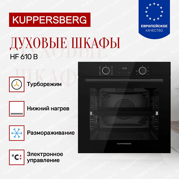 Электрический духовой шкаф Kuppersberg HF 610 B ориентирован на покупателей, которым нужна просторная 80-литровая камера, широкий выбор из десяти режимов нагрева и удобная гидролизная система очистки. Наличие режима Convection ECO для экономии энергии, комбинации гриля с конвекцией для румяной корочки и специального режима «Пицца» делают данную модель отличным выбором для домашней кулинарии. Официальная дилерская сеть подтверждает оригинальное происхождение техники и предоставляет гарантийное обслуживание, а надёжная сервисная поддержка обеспечивает долгий срок службы.
