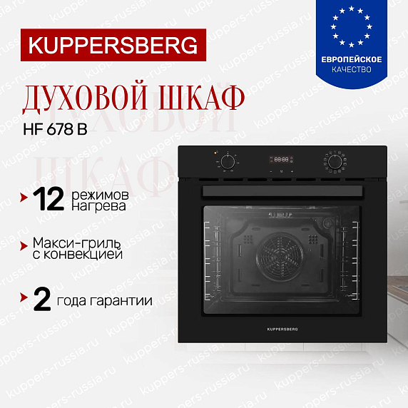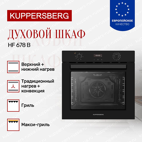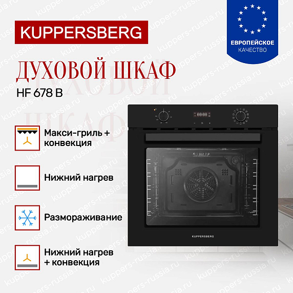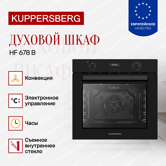 Технологичность Kuppersberg HF 678 B проявляется в его многофункциональности. Современные функции приготовления позволяют готовить разнообразные блюда с минимальными усилиями. Вы сможете наслаждаться равномерным распределением тепла благодаря системе конвекции, что гарантирует идеальный результат для каждого рецепта.