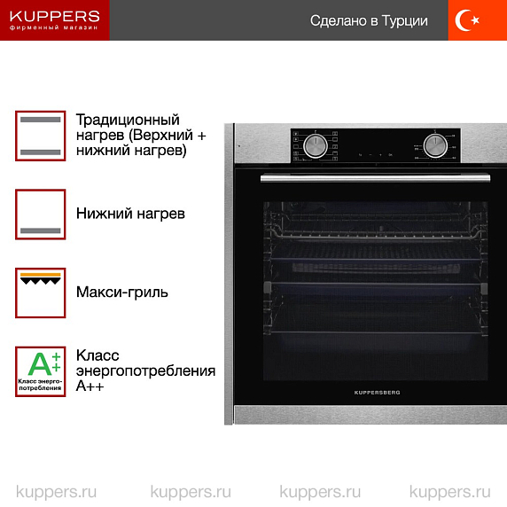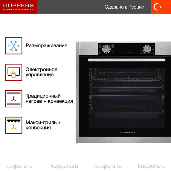 Торговая марка Kuppersberg уже 15 лет находится на рынке и входит в ТОП-10 производителей бытовой техники в России. По всему миру расположено более десяти заводов компании Куперсберг, на которых собирается техника. Приятный дизайн с лаконичными линиями отражает главную философию Северной Европы: надёжность — превыше всего. Поэтому можно быть уверенным, что даже газовая духовка прослужит долго и, при соблюдении указанных в инструкции, правил, останется максимально безопасным прибором. Электрические модели также отражают надёжность, при этом дают больше функций для процесса приготовления пищи.