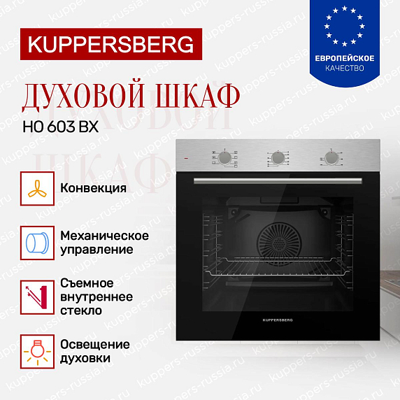 ДУховой шкаф Купперсберг HO 603 BX — это сбалансированное сочетание немецкой инженерии, турецкой сборки и доступной цены. Прочный корпус, продуманная эргономика, лёгкий уход и надёжная механика — всё это делает модель отличным выбором для семей, ценящих практичность.