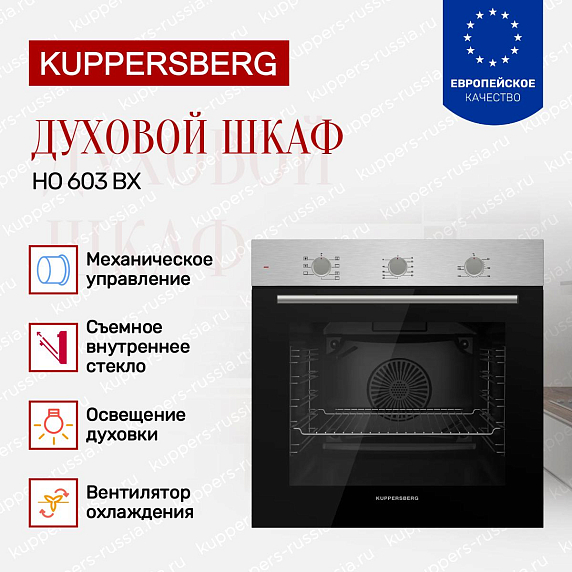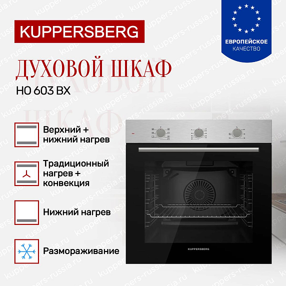 Духовой шкаф Kuppersberg HO 603 BX — это воплощение современного дизайна и функциональности, идеально вписывающийся в любой интерьер кухни. Его корпус выполнен из нержавеющей стали, что придает устройству не только стильный и лаконичный внешний вид, но и обеспечивает долговечность и устойчивость к механическим повреждениям. Благодаря компактным габаритам — высоте 59,5 см, ширине 59,5 см и глубине 56,5 см — прибор легко встраивается в нишу размером 60×56×55 см, что делает его удобным для установки в стандартные кухонные гарнитуры.