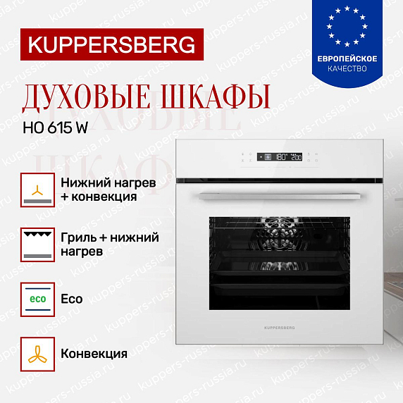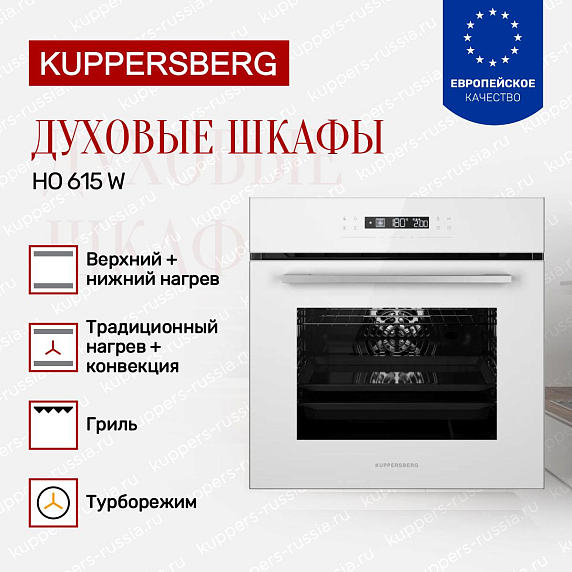 Духовой шкаф Купперсберг HO 615 W — это сбалансированное сочетание эстетики, технологичности и практичности. Он подойдет как для небольшой городской кухни, где важен каждый сантиметр, так и для просторного загородного дома, где ценится надежность и многофункциональность.