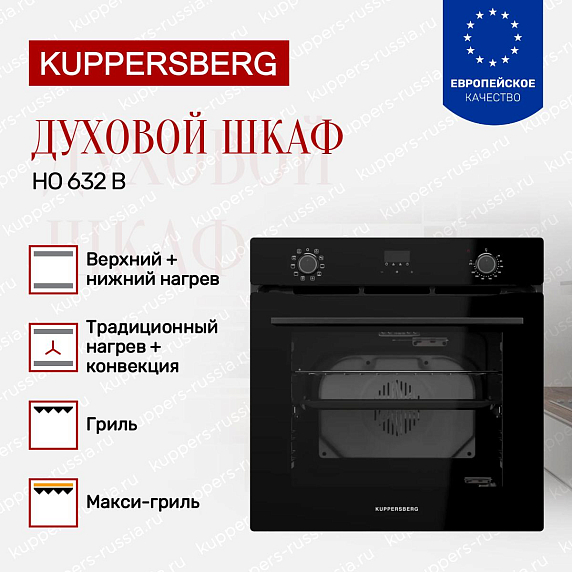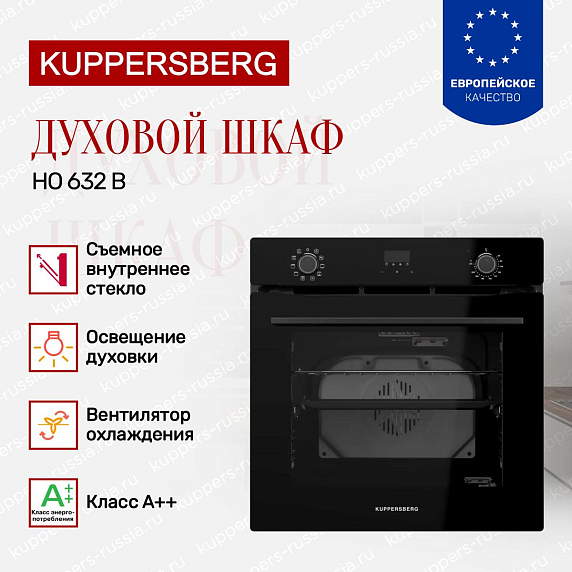 Духовой шкаф Kuppersberg HO 632 B представляет собой современное полноразмерное устройство с элегантным черным цветом и продуманным дизайном, который гармонично впишется в интерьер любой кухни. Его строгие линии и минималистичный стиль подчеркивают высокий уровень технической оснащенности и функциональности. Корпус изготовлен с применением качественных материалов, обеспечивающих долговечность и надежность. Благодаря габаритам 59,5 см в высоту, 59,4 см в ширину и 52,5 см в глубину, модель удобно встраивается в нишу размером 60×56,5×56 см, что облегчает монтаж и экономит пространство. Черная фурнитура и стеклянная дверца с тремя слоями стекла создают современный и стильный внешний вид, а съемные внутренние элементы упрощают уход и обслуживание.