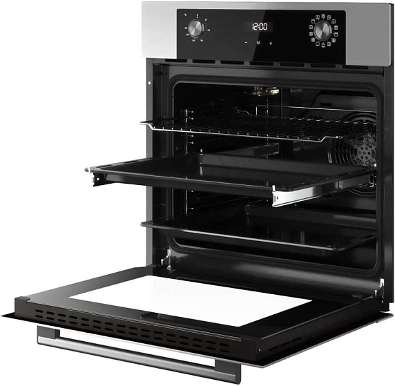 Стильный черный духовой, отлично печёт, удобный таймер и сенсорное управление, лёгкая очистка легко.
