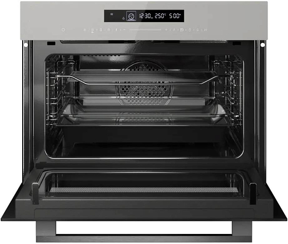 Функциональные возможности данного духового шкафа впечатляют разнообразием режимов: традиционный нагрев, традиционный с конвекцией, гриль, макси-гриль с конвекцией, турборежим, нижний нагрев с турбо (идеально подходит для пиццы), а также разморозка и быстрый нагрев. Особое внимание заслуживают микроволновые режимы, включая турбо, пиццу и макси-гриль с конвекцией, что расширяет спектр кулинарных экспериментов и позволяет готовить блюда быстро и с превосходным вкусом. Конвекция обеспечивает равномерное распределение горячего воздуха внутри камеры, что способствует идеальному пропеканию и подрумяниванию продуктов.