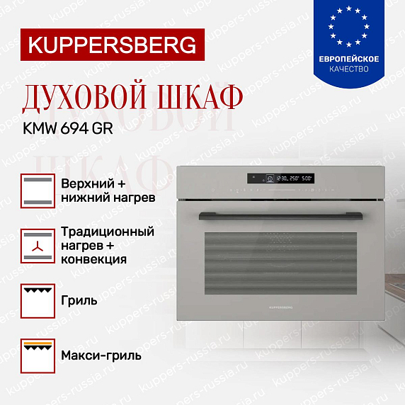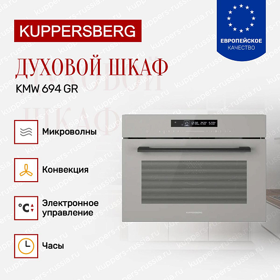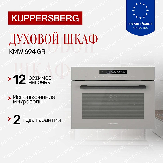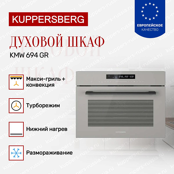 Духовой шкаф Kuppersberg KMW 694 GR — это компактное и стильное решение для современной кухни, сочетающее в себе функциональность и элегантный дизайн. Его серый цвет и сдержанная фурнитура гармонично впишутся в интерьер любого помещения, добавляя ему нотки утончённости и современности. Компактные габариты (высота 45,4 см, ширина 59,5 см, глубина 56,8 см) позволяют легко встроить прибор в нишу размером 45×56×55 см, что особенно удобно для небольших кухонь или ограниченного пространства. Благодаря этому устройство эффективно занимает минимальное место, не уступая в возможностях полноразмерным моделям.