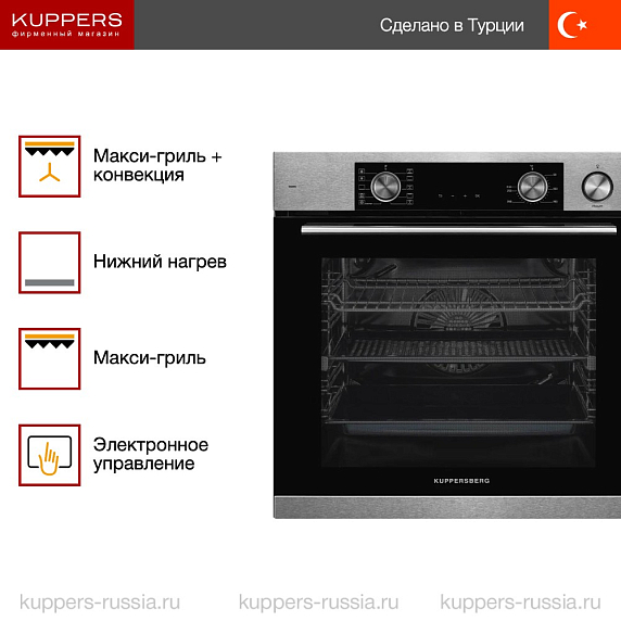 Представляем современную встраиваемую духовку Kuppersberg KSO 610 X, которая станет идеальным дополнением любого кухонного пространства. Корпус из нержавеющего металла создает премиальный внешний вид, органично сочетающийся с различными стилями оформления. Лаконичный дизайн подчеркивается продуманными деталями и качественной отделкой. Цифровая панель управления добавляет технической эстетики, а размеры 60×56×55 см обеспечивают гибкость встраивания. Трехслойное остекление дверцы гарантирует надежную теплоизоляцию, а мягкий доводчик делает использование максимально комфортным. Возможность демонтажа дверцы и внутреннего стекла существенно упрощает процесс очистки.
