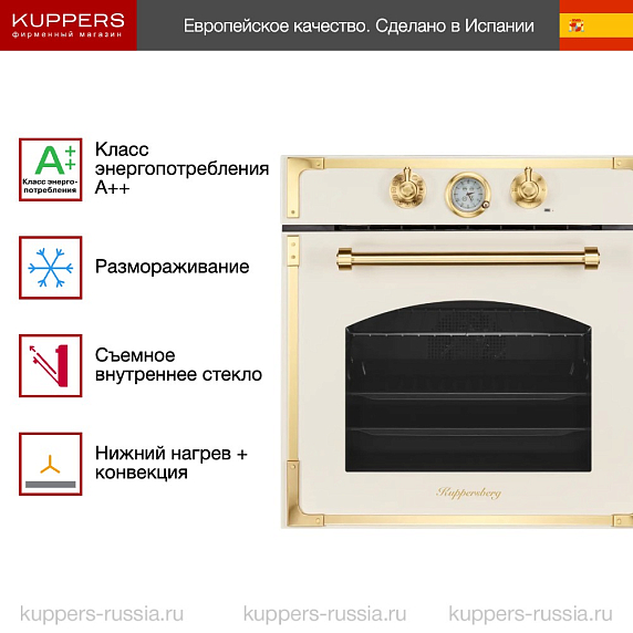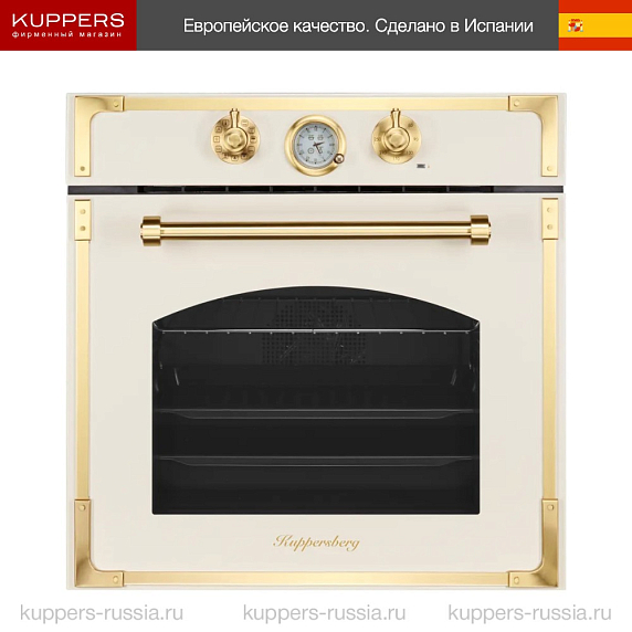 Духовой шкаф Kuppersberg RC 6911 C Bronze — это воплощение классического дизайна с изысканным бежевым оттенком корпуса и золотистой фурнитурой, что придаёт кухонному интерьеру неповторимую элегантность и уют. Благодаря гармоничному сочетанию цветовой палитры и продуманной формы, техника становится не только функциональным прибором, но и стильным акцентом в помещении. Его полноразмерный корпус, выполненный с точностью и высоким качеством, идеально впишется в нишу стандартных размеров 60×56×58 см, обеспечивая удобство установки и интеграции в мебельный гарнитур. Компактные габариты 59,5×59,5×55,9 см позволяют рационально использовать пространство кухни, не жертвуя вместительностью и эргономичностью.