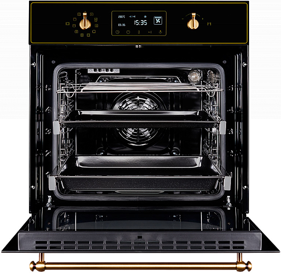 Добавление к традиционному нагреву верхними и нижними элементами принудительной циркуляции воздуха обеспечивает идеальные условия для запекания мяса большим куском, птицы и рыбы целиком, приготовления колбас, рулетов, приготовления запеканок. Скорость приготовления увеличится, а само блюдо равномерно подрумянится снаружи.