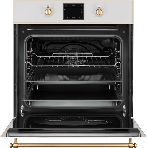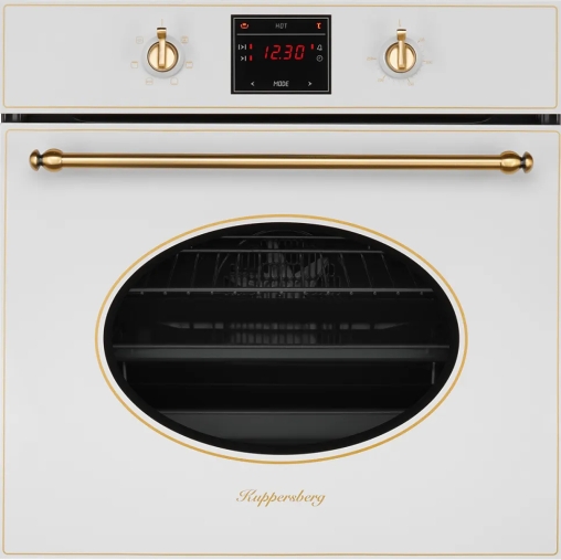Духовой шкаф Kuppersberg SR 615 W Bronze от известного производителя бытовой техники — это стильный и функциональный помощник на вашей кухне, который позволит приготовить разнообразные блюда быстро и качественно. Он выполнен в ретро-стиле: белый корпус отлично сочетается с бронзовой фурнитурой. Современная электронная панель гармонично интегрирован в винтажный дизайн. Цветной TFT-дисплей делает процесс настройки шкафа еще более комфортным и понятным, сенсорный программатор удобен в применении. Поворотные переключатели обеспечивают простоту и надежность регулировки.