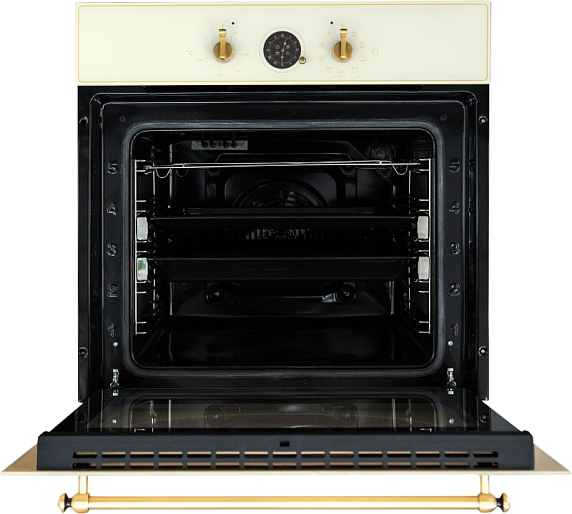 Духовой шкаф Kuppersberg SR 669 C BRONZE характеризуется стильным оформлением в расцветке слоновой кости с элементами бронзы и расширенными возможностями приготовления, включая 5 уровнями уровней приготовления, где 2 из них имеют телескопические направляющие.
