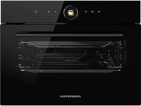 Духовой шкаф Kuppersberg KMW 617 объёмом 50 л сочетает лаконичный чёрный дизайн с продуманной функциональностью, предназначенной для встраивания в нишу высотой от 45 до 45.2 см, шириной 56–56.8 см и глубиной 55 см. Небольшие габариты (высота 45.4 см, ширина 59.5 см, глубина 56.5 см) позволяют экономить пространство при сохранении достаточного объёма для приготовления разнообразных блюд. Корпус и фурнитура выполнены в чёрном цвете, что создаёт строгую, но элегантную визуальную атмосферу в современной кухне. Сенсорные переключатели и сенсорный программатор подчеркивают минималистичную эстетику, а цветной TFT-дисплей обеспечивает интуитивно понятное взаимодействие с режимами и настройками.