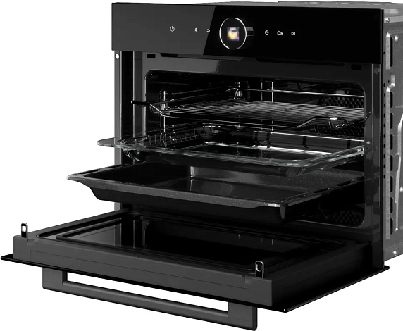 Благодаря сочетанию режимов с конвекцией и грилем, а также мощной микроволновой секции, техника демонстрирует гибкость в приготовлении: быстрый разогрев, хрустящая корочка и равномерное пропекание становятся реальностью. Компактные размеры и богатая функциональность делают прибор отличным решением для квартир с ограниченным пространством, студий, небольших кухонь и встроенных модулей. Матовые поверхности минимизируют видимость отпечатков, а чёрная отделка легко интегрируется в большинство современных интерьеров, от монохромных до контрастных цветовых схем.