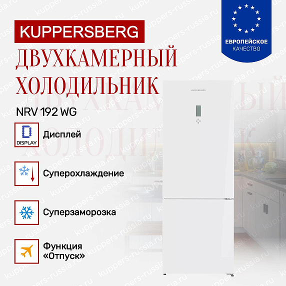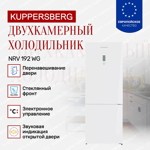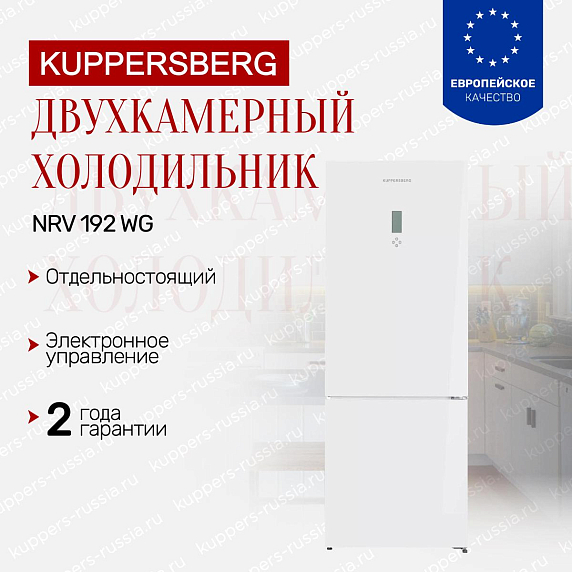 Двухкамерный холодильник Kuppersberg NRV 192 WG сочетает обтекаемый современный дизайн с практичными решениями для комфортного хранения продуктов: корпус в белом оттенке и стеклянный фронт придают интерьеру аккуратный, эстетичный вид, а продуманная внутренняя компоновка обеспечивает рациональное использование полезного объема 461 л (333 л для холодильного отделения и 128 л в морозилке). Аппарат выполнен для отдельностоящей установки и разработан с учетом климатического класса SN‑T, что гарантирует стабильную работу в широком диапазоне температур окружающей среды. Энергетический паспорт подтверждает уровень A+, потребление электроэнергии — 409 кВт·ч в год, что обеспечивает баланс между производительностью и экономичностью. Обратите внимание на четырехзвездочную маркировку, подходящую для длительного замораживания продуктов и создания оптимальных условий для хранения.