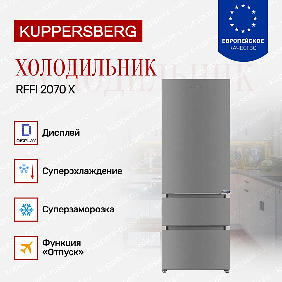 Двухкамерный холодильник Kuppersberg RFFI 2070 X — это высококачественное устройство, произведенное в Китае, с гарантией на 24 месяца. Эта модель относится к типу отдельностоящих и вписывается в коллекцию современного дизайна. Она выполнена в цвете нержавеющей стали, что придает ей элегантность и универсальность. Высота холодильника составляет 200 см, ширина — 70.4 см, а глубина — 69.4 см, общий полезный объем — 535 л.