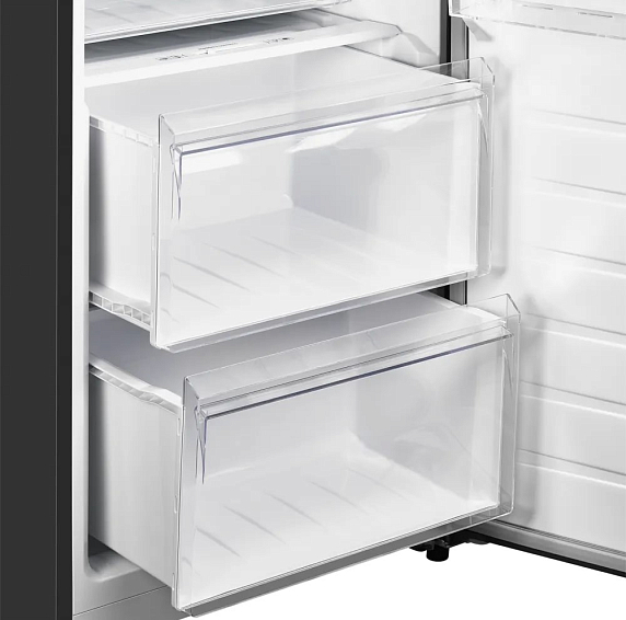 Купил этот холодильник полгода назад и каждый день радуюсь, что выбрал именно его. Он выглядит строго и современно, черная поверхность дополнила кухню и не требует постоянного ухода. Внутри всё продумано: светодиодное освещение яркое и равномерное, полки из стекла удобные, а зона свежести реально продлевает срок жизни зелени и мяса. Один раз привёз домой много овощей после фермерского рынка — две большие корзины поместились отдельно, салат оставался хрустящим пять дней подряд, и я не переживал о гниении.