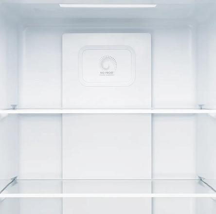 Основной особенностью данной модели является ее вместительность. Полезный объем составляет 355 литров, что позволяет хранить большое количество продуктов. Холодильное отделение оснащено системой Frost Free, предотвращающей образование инея и льда, обеспечивая автоматическое размораживание. Внутри предусмотрены четыре полки, три из которых регулируемые, изготовленные из прочного стекла. Также имеются четыре полки на дверце, два ящика для овощей и фруктов и зона свежести, что позволяет удобно организовать пространство для хранения различных продуктов.