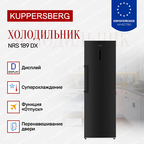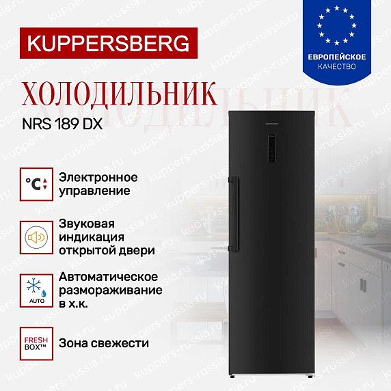 Холодильник Kuppersberg NRS 189 DX изготовлен в оттенке глубокого черного с однотонной фурнитурой создает выразительную, но сдержанную визуальную подачу, которая гармонично впишется в интерьер современной кухни. Лаконичные линии и ровная плоскость дверцы формируют минималистичный силуэт, при этом цветовая унификация элементов придает изделию законченный вид. Вертикальная форма высотой 185 см и пропорции 60×65 см обеспечивают компактное размещение у стены или между модульными элементами, не нарушая общей композиции рабочей зоны.
