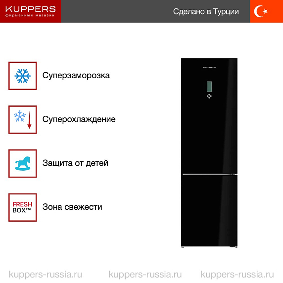 Холодильник Kuppersberg RFCN-2012 BG — это современная модель бытовой техники, произведенная в Турции и предназначенная для сохранения свежести продуктов питания. Этот двухкамерный отдельностоящий холодильник обладает привлекательным дизайном, который подчеркивает его стиль и функциональность. Черный цвет корпуса и стеклянный фронт придают ему элегантность и современность, благодаря чему он станет украшением любой кухни.