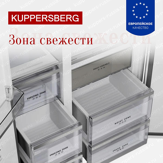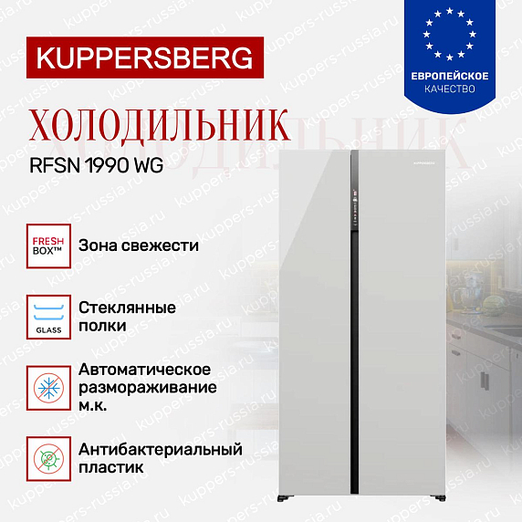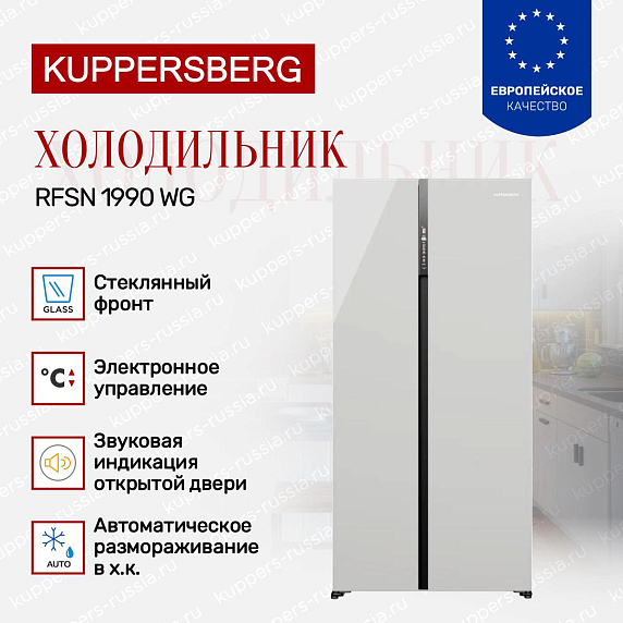 Холодильник Kuppersberg Side by Side RFSN-1990-WG — это высококачественное устройство, произведенное в Китае, с гарантией на 12 месяцев. Этот аппарат отличается своим элегантным дизайном и функциональностью. Белый цвет придает ему современный и стильный вид, который легко вписывается в любой интерьер. С размерами 191.2 см в высоту, 91.1 см в ширину и 60 см в глубину, он идеально подходит для больших и средних кухонь.