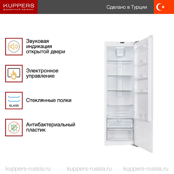 Встраиваемый холодильник Купперсберг SRB 1770 оснащен электронным управлением, с помощью которого можно быстро настроить температуру внутри камеры, а также активировать различные режимы. Светодиодная подсветка ярко освещает космическую камеру, используется по-разному и потребляет минимум электроэнергии. Общий объем прибора составляет 300 л, поэтому это отличный вариант для большой семьи. Больше не надо будет переживать о том, что продукты могут не переместиться.
