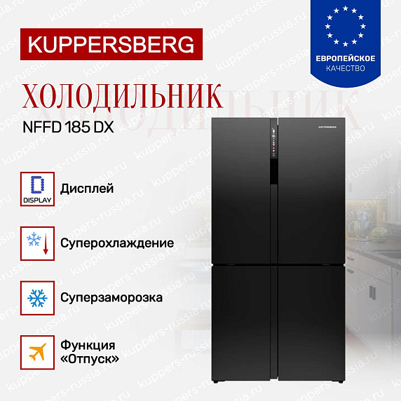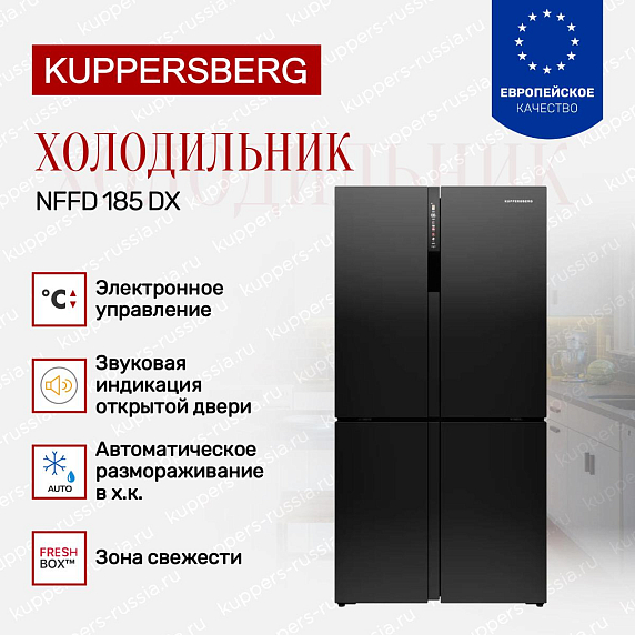 Side-by-side холодильник Kuppersberg NFFD 185 DX — это воплощение современного дизайна и передовых технологий в одном устройстве. Его четырехдверный корпус выполнен в элегантном черном цвете, который гармонично впишется в интерьер любой кухни, придавая ей стиль и изысканность. Высота 183 см, ширина 91,1 см и глубина 62,1 см обеспечивают оптимальное размещение в помещении, сочетая вместительность и компактность. Благодаря продуманной конструкции и качественным материалам, корпус отличается прочностью и долговечностью, что гарантирует долгий срок службы.