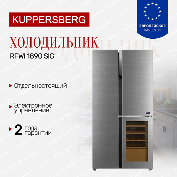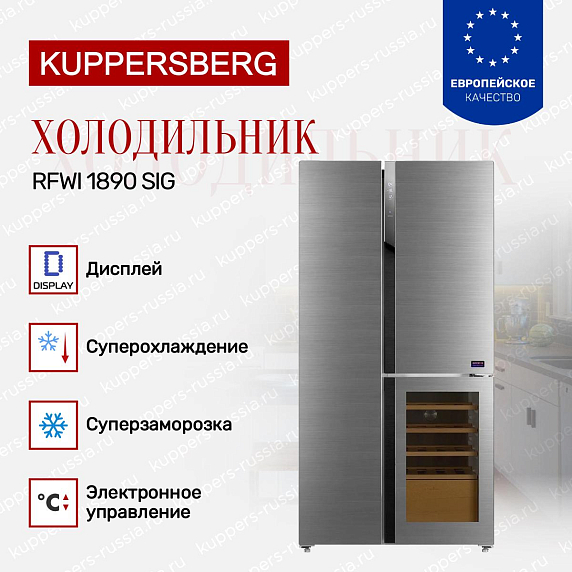 Холодильник Side by Side Kuppersberg RFWI 1890 SIG — это воплощение современного дизайна и функциональности для вашего дома. Впечатляющий серебристый корпус гармонично впишется в любой интерьер кухни, подчеркивая актуальные тенденции оформления пространства. Модель отличается внушительными габаритами: высота 183 см, ширина 91 см и глубина 70,5 см, что обеспечивает просторное внутреннее пространство для хранения продуктов. Общий полезный объем составляет 535 литров, что позволяет удобно разместить все необходимые запасы для большой семьи или ценителей кулинарных экспериментов.