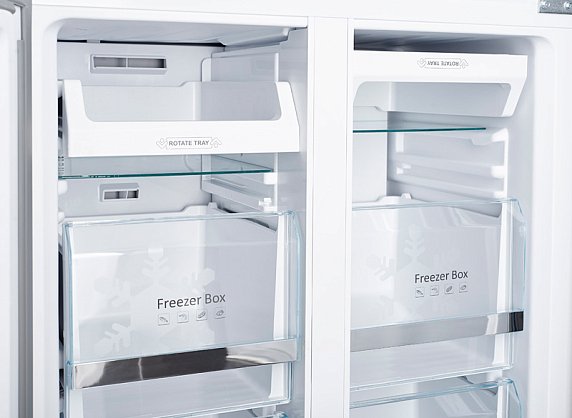 Размораживание морозильной камеры — автоматическое: обычно таким термином обозначают систему NoFrost или, в редких случаях, капельную. В первом случае устройство не даёт образовываться на стенках наледи, во втором — периодически её подтапливает. Это облегчает эксплуатацию.