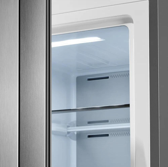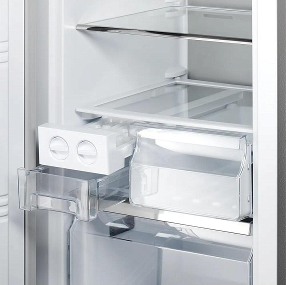 Встроенная система No Frost полностью исключает необходимость в ручном размораживании. Эта технология не только упрощает уход за устройством, но и способствует равномерной циркуляции холодного воздуха, что обеспечивает стабильные условия хранения и сохраняет первоначальные качества продуктов. Управление аппаратом интуитивно понятно и позволяет с легкостью устанавливать требуемые параметры работы.