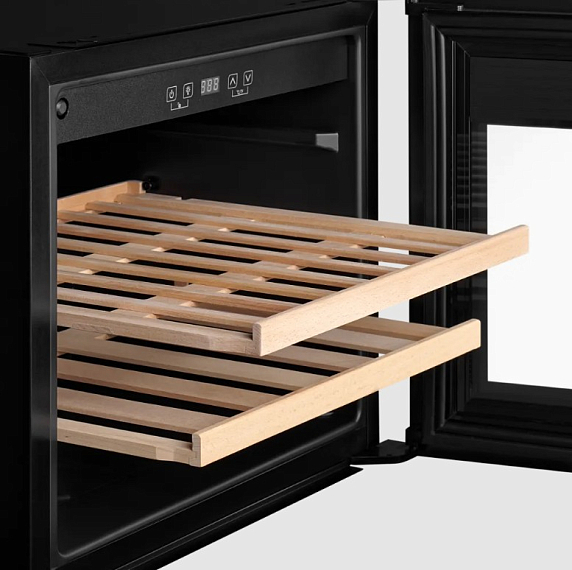 Покупала винный шкаф, потому что берегу небольшую коллекцию и хотела аккуратное место для её хранения. Встроенный, в чёрном цвете, он полностью вписался в мою кухню в духе современного дизайна — смотрится строго и аккуратно. Вместимость на 28 бутылок полностью закрывает мои потребности, и деревянные полки придают хранению аккуратный, «домашний» вид.