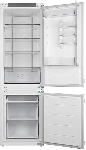 Встраиваемый двухкамерный холодильник Kuppersberg RBN 1765 — это стильное и функциональное решение для вашей кухни. Его современный дизайн в белом цвете идеально впишется в любой интерьер, придавая ему элегантность и утонченность. Высота устройства составляет 177.2 см, ширина — 54 см, а глубина — 55 см. Эти габариты позволяют легко интегрировать его в нишу размером 177.8-178.2 х 56-56.8 х 56-58 см. Общий полезный объем составляет 238 литров, что обеспечивает достаточно места для хранения продуктов.