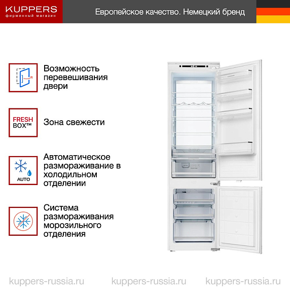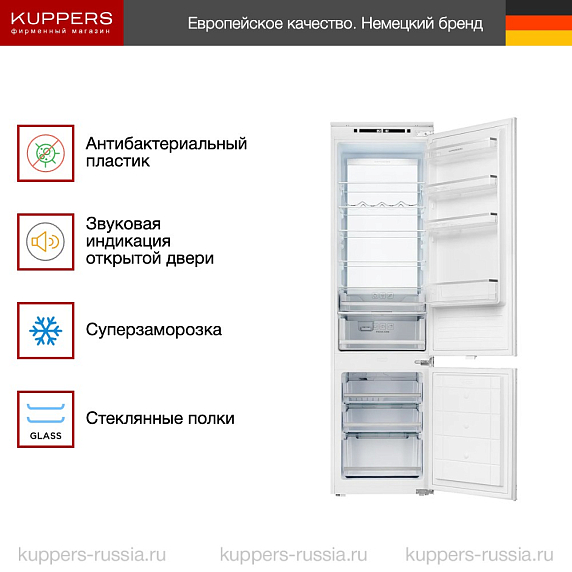 Встраиваемый холодильник Kuppersberg RBN 1970 обладает стильным дизайном и функциональностью, которые делают его идеальным выбором для современных кухонь. Белый цвет корпуса придает ему нейтральный и чистый вид, позволяя интегрировать его в любой интерьер.