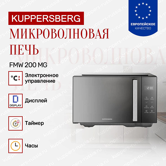 Устройство оснащено электронным управлением и поворотными переключателями, что обеспечивает простоту и удобство использования. Дисплей, таймер и часы делают процесс приготовления пищи более контролируемым и точным. Кроме того, микроволновка оснащена 10 уровнями мощности, что позволяет выбрать оптимальный режим для различных блюд. Микроволновая печь Kuppersberg FMW 250 X предлагает 8 автоматических программ, которые значительно упрощают процесс приготовления пищи. Встроенный гриль типа "теновый" обеспечивает идеальное приготовление мяса, рыбы и овощей, сохраняя их сочность и вкус. Функция разморозки по весу и времени позволяет быстро и эффективно разморозить продукты.