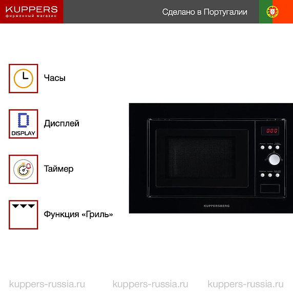 Всего предусмотрено 8 автоматических программ, с ними вам больше не придётся думать о том, как приготовить то или иное блюдо. С такими режимами вы, в том числе сможете приготовить мясо, овощи, рыбу. Покрытия внутренней камеры встраиваемой микроволновой печи Купперсберг HMW 615 B состоит из нержавеющей стали, оно устойчиво к температурам, не требует особого ухода, является безопасным для еды и вашего здоровья. При помощи подсветки камеры товара вы всегда будете видеть состояние вашего блюд, а благодаря таймеру вам больше не потребуется контролировать ход кулинарного процесса.