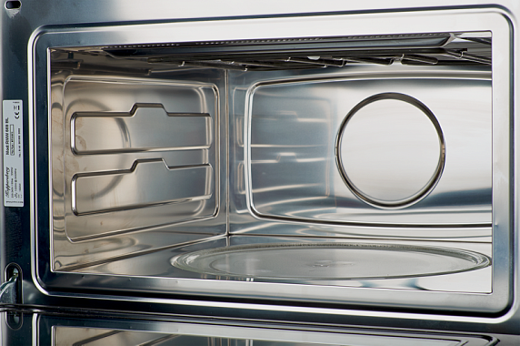Применение нержавеющей стали для изготовления внутренних камер микроволновых печей делает прибор практически неуязвимым для влаги, содержащейся в продуктах. Можно варить, тушить и даже готовить на пару — коррозия не страшна. Уход за поверхностями из нержавейки прост, следует лишь избегать абразивных чистящих средств.
