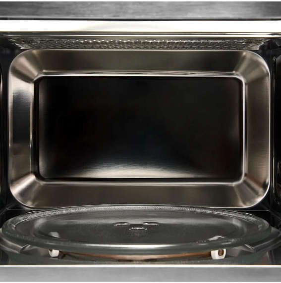 Размеры устройства впечатляют — объем 20 литров, что позволяет готовить большие порции еды. При этом оно не занимает много места на кухне благодаря своим компактным размерам. Диаметр вращающегося подноса 24.5 см, что достаточно для большинства блюд.
