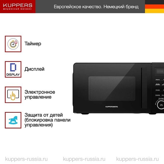- 20 л объём с поворотным столом 24.5 см обеспечивают равномерный разогрев порций.