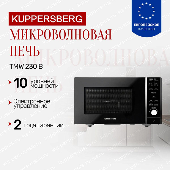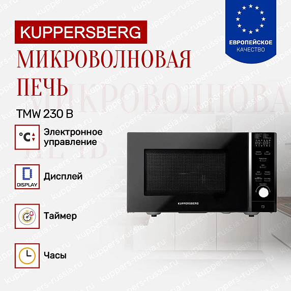 Микроволновая печь Kuppersberg TMW 230 B представляет собой уникальное сочетание функциональности, стильного дизайна и качества. Изготовленная в Китае, эта модель отличается высоким уровнем надежности и долговечности, подтвержденным 24-месячной гарантией от производителя.