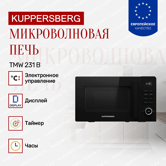 Микроволновая печь Kuppersberg TMW 230 B представляет собой уникальное сочетание функциональности, стильного дизайна и качества. Изготовленная в Китае, эта модель отличается высоким уровнем надежности и долговечности, подтвержденным 24-месячной гарантией от производителя.
