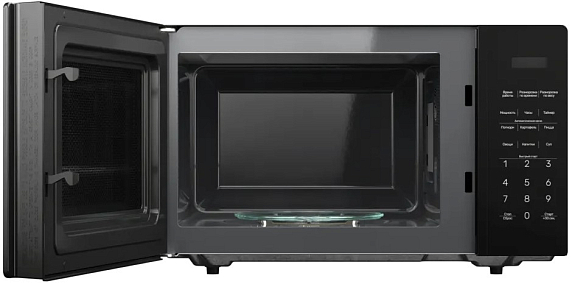 - Чёрное исполнение и компактные размеры позволяют микроволновке гармонично вписаться в любой кухонный интерьер.