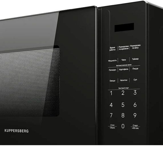 Микроволновка Kuppersberg TMW 233 B — это удачное сочетание лаконичного дизайна и продуманной функциональности для повседневного использования. Её глубокий чёрный корпус и минималистичная фурнитура органично вписываются в любой кухонный ансамбль — от современного лофта до классического интерьера. Компактные габариты (49 × 29 × 38 см) позволяют разместить прибор на столешнице, полке или в нише без ущерба для свободного пространства. Дверца открывается слева и легко откидывается, обеспечивая удобный доступ к внутренней камере с эмалевым покрытием, устойчивым к загрязнениям и простым в уходе. Вращающийся поднос диаметром 27 см равномерно распределяет тепло, что особенно удобно при разогреве или готовке в посуде разного формата.
