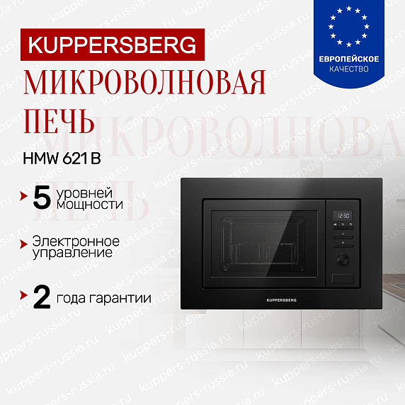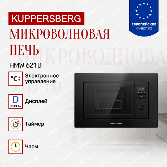 Преимуществом Kuppersberg HMW 621 B является сочетание встраиваемого формата и аккуратного внешнего вида. Утапливаемые переключатели придают панели строгость и защищают от случайных нажатий. Пользователь получает устройство, гармонирующее с мебелью.