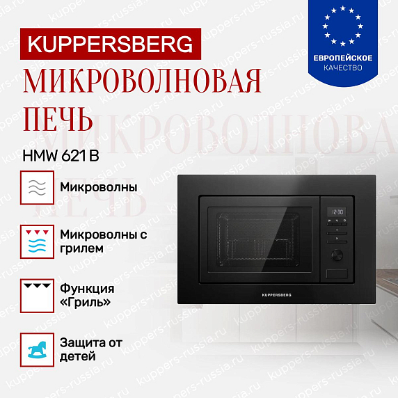 Встраиваемая микроволновая печь Kuppersberg HMW 621 B представляет собой устройство, монтируемое в кухонный гарнитур. Корпус выполнен в черном цвете с фурнитурой аналогичного оттенка. В материале рассмотрены конструктивные особенности, технические показатели, система управления и вопросы повседневной эксплуатации.
