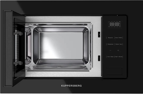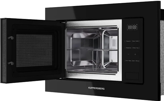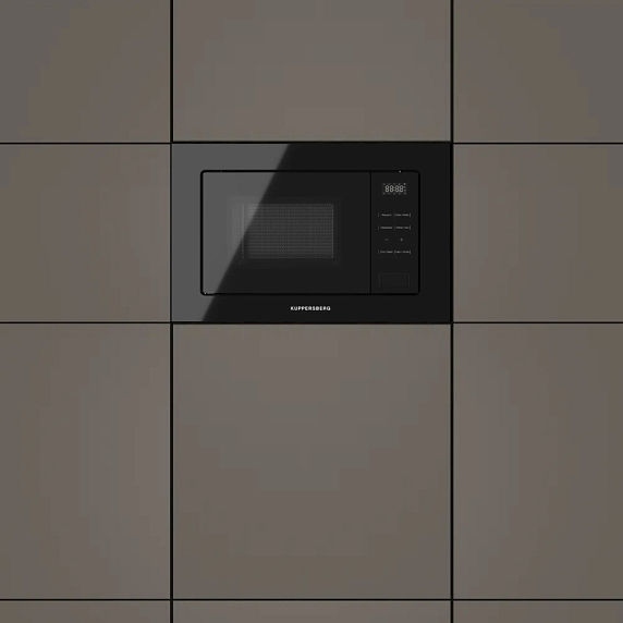Встраиваемая микроволновая печь Kuppersberg HMW 626 B в черном цвете и с минималистичной облицовкой — идеальное решение для стильной кухни. Строгие линии фасада, матовая фурнитура также в черном оттенке и аккуратно интегрированная панель управления формируют сдержанный, но выразительный облик, который легко сочетается с мебелью в разных оттенках. Габариты корпуса — 59,5 см в ширину, 38,8 см в высоту и 34,4 см в глубину — позволяют аккуратно разместить прибор в нише, размеры которой должны соответствовать 38,2×56,8×50 см, обеспечивая плотную и надежную врезку при монтажных работах.