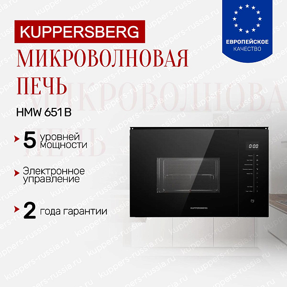 Преимуществом Kuppersberg HMW 651 B является сочетание пяти уровней мощности и объема 25 литров. Это обеспечивает гибкость при приготовлении различных блюд. Пользователь получает устройство с оптимальной компактностью и практичностью.