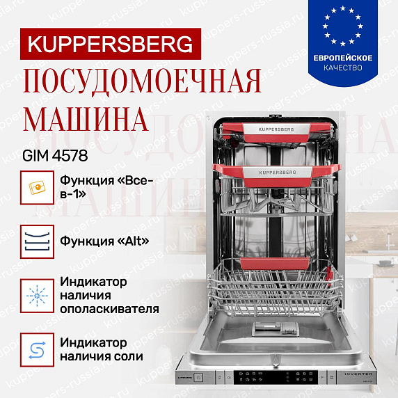 Встраиваемая посудомоечная машина Kuppersberg GIM 4578 относится к категории бытовой техники, монтируемой в кухонный мебельный гарнитур. Корпус рассчитан на установку в подготовленный проем. В данном обзоре проанализированы конструктивные решения, технические параметры, набор программ и особенности ежедневной эксплуатации.